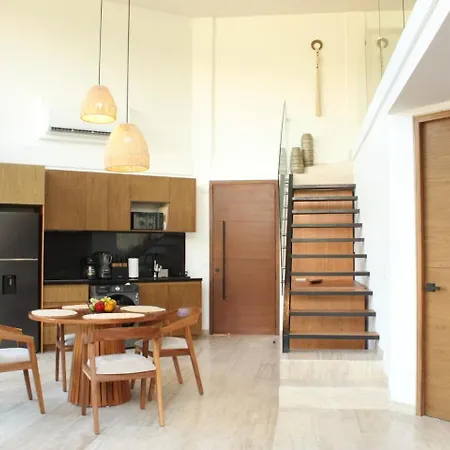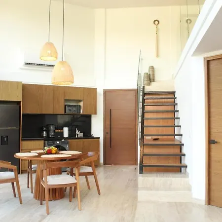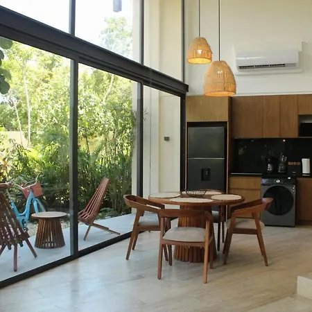 Serene Loft 5 Min To The Beach In The Tulum Jungle apartment has a balcony, a living room, and a fully equipped kitchen, and comforts such as climate control.